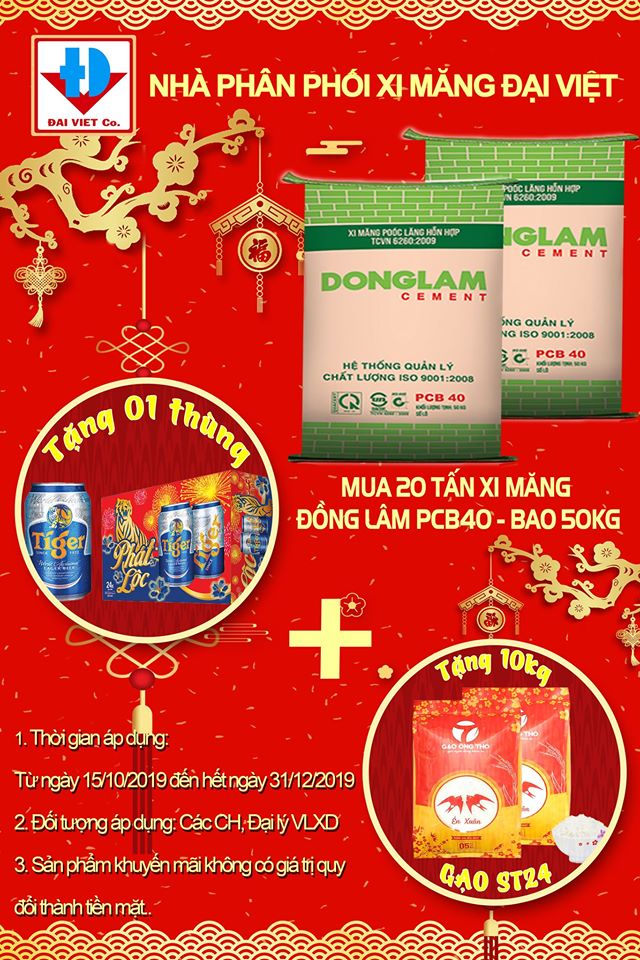 🎉 Nhà phân phối xi măng Đại Việt xin chân thành cảm ơn quý khách hàng đã hợp tác và sử dụng xi măng Đồng Lâm trong suốt thời gian qua. Nhân dịp xuân Canh Tý 2020, nhà phân phối xi măng Đại Việt xin được tri ân quý khách hàng với chương trình " ĐÓN XUÂN RỘN RÀNG - NGẬP TRÀN QUÀ TẶNG " với xi măng Đồng Lâm.